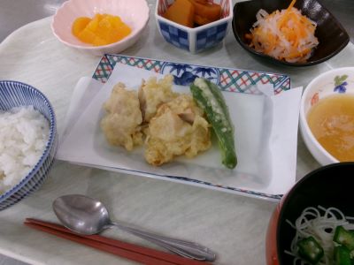 ボリュームのある天ぷらと、かぼちゃの煮物で満腹になるメニューでした。