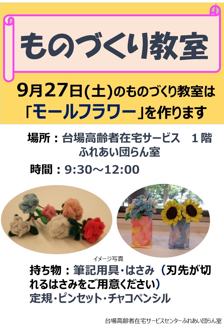 ものづくり「9月」【台場ふれあい団らん室】【台場高齢者在宅サービスセンター】