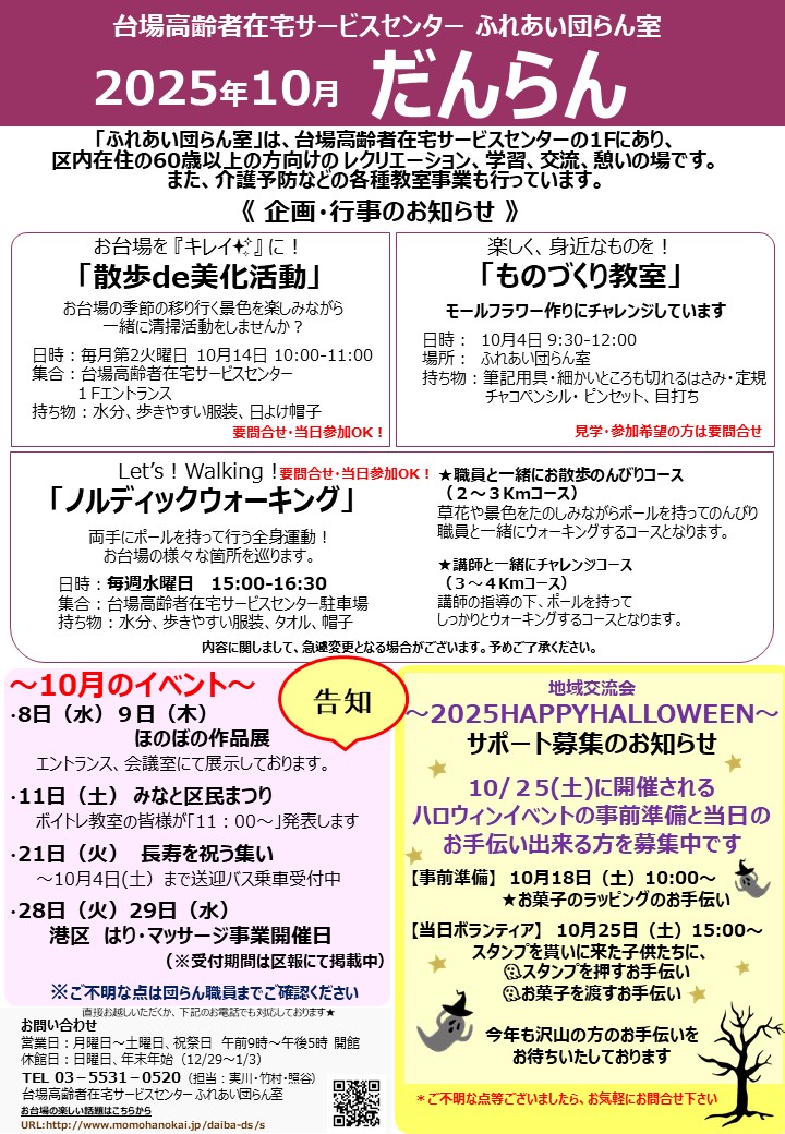 だんらん10月号【台場ふれあい団らん室】【台場高齢者在宅サービスセンター】