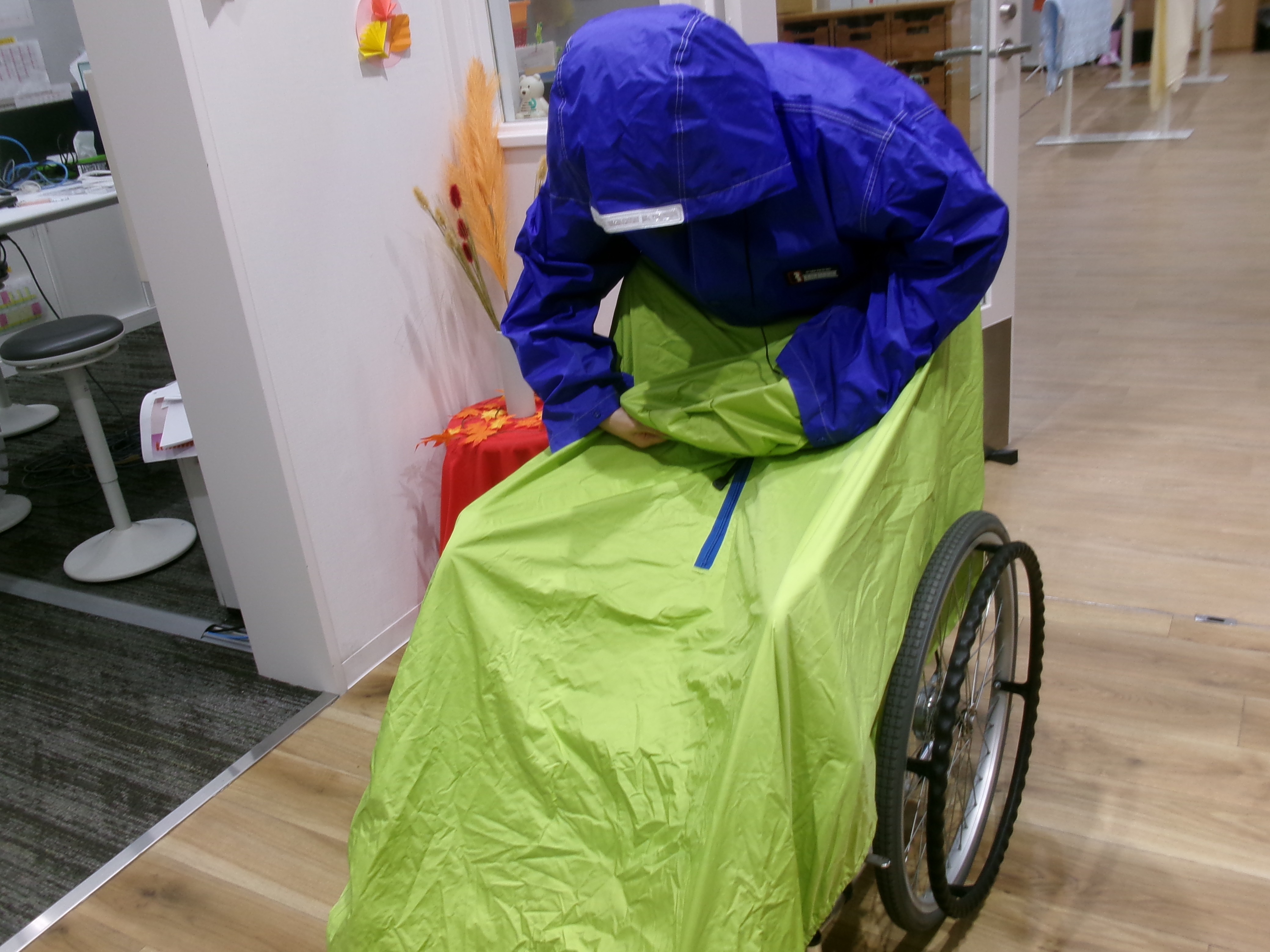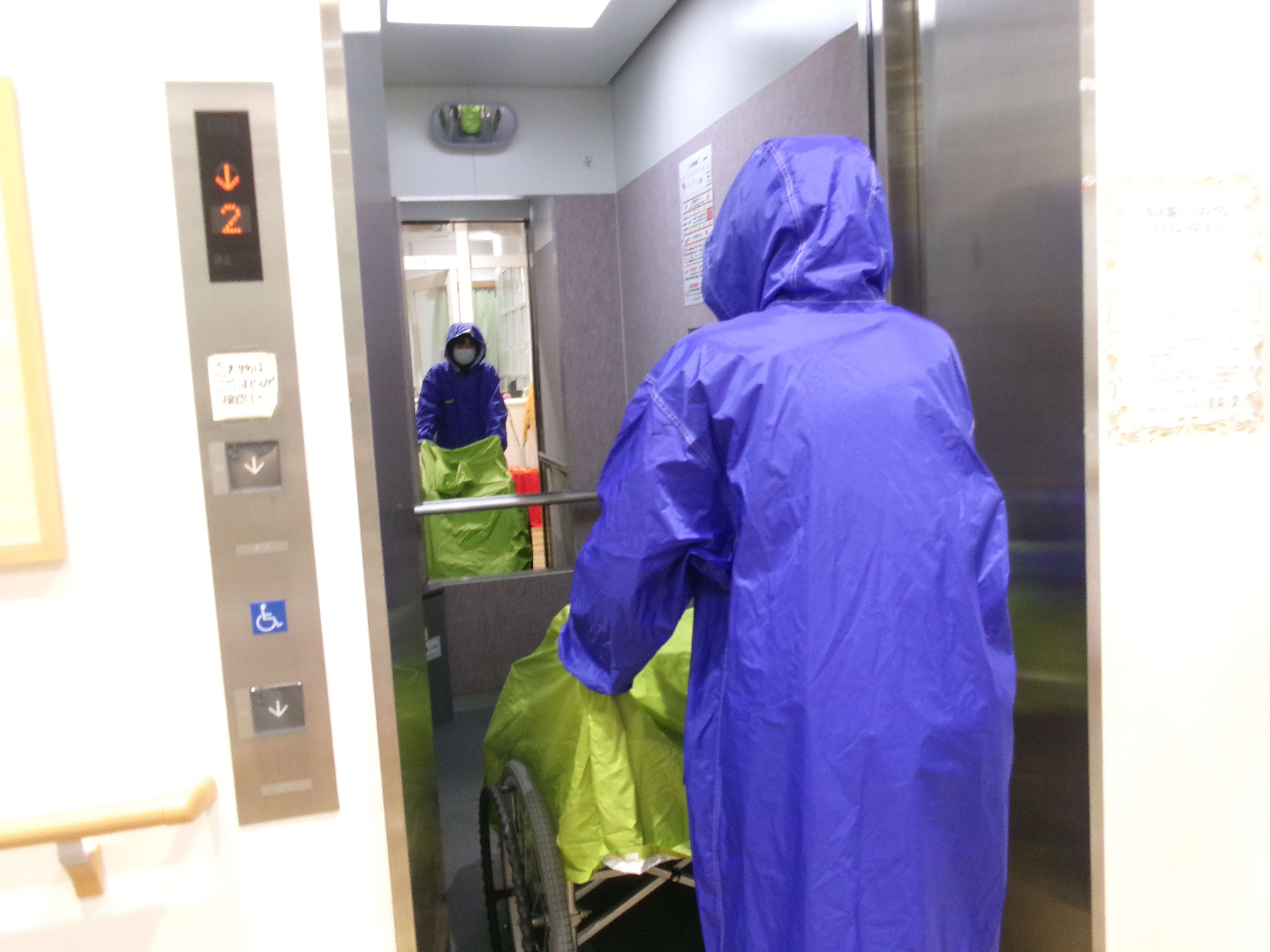 車椅子も濡れないように用意します。