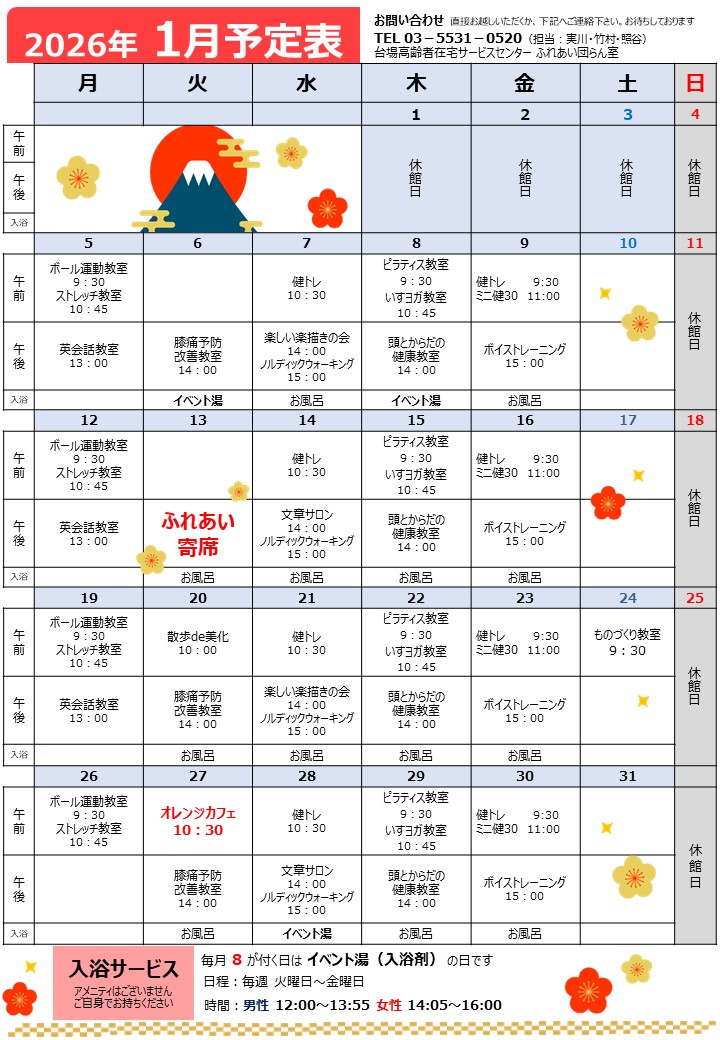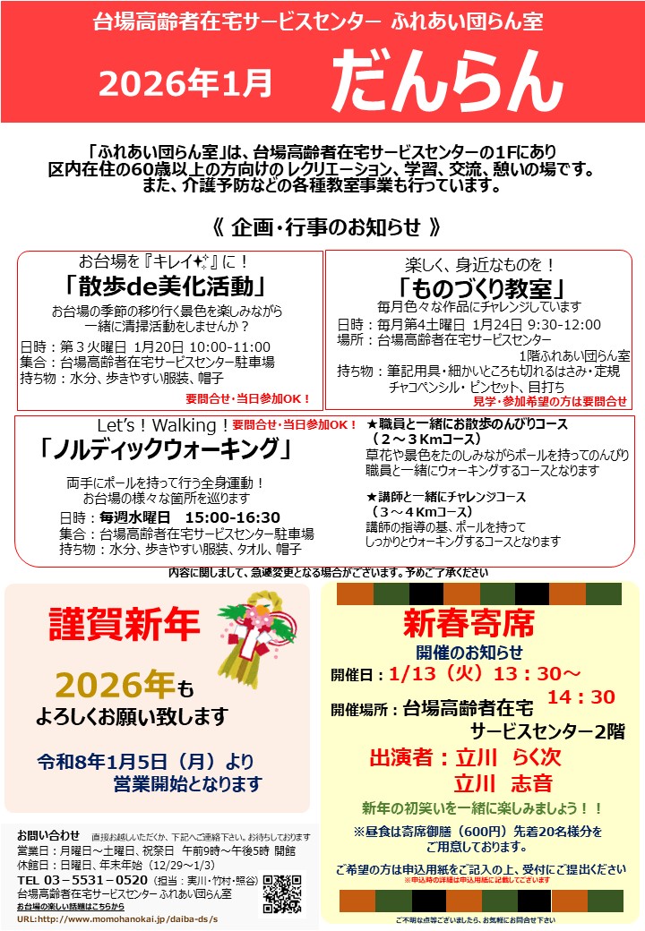 だんらん1月号【台場ふれあい団らん室】【台場高齢者在宅サービスセンター】