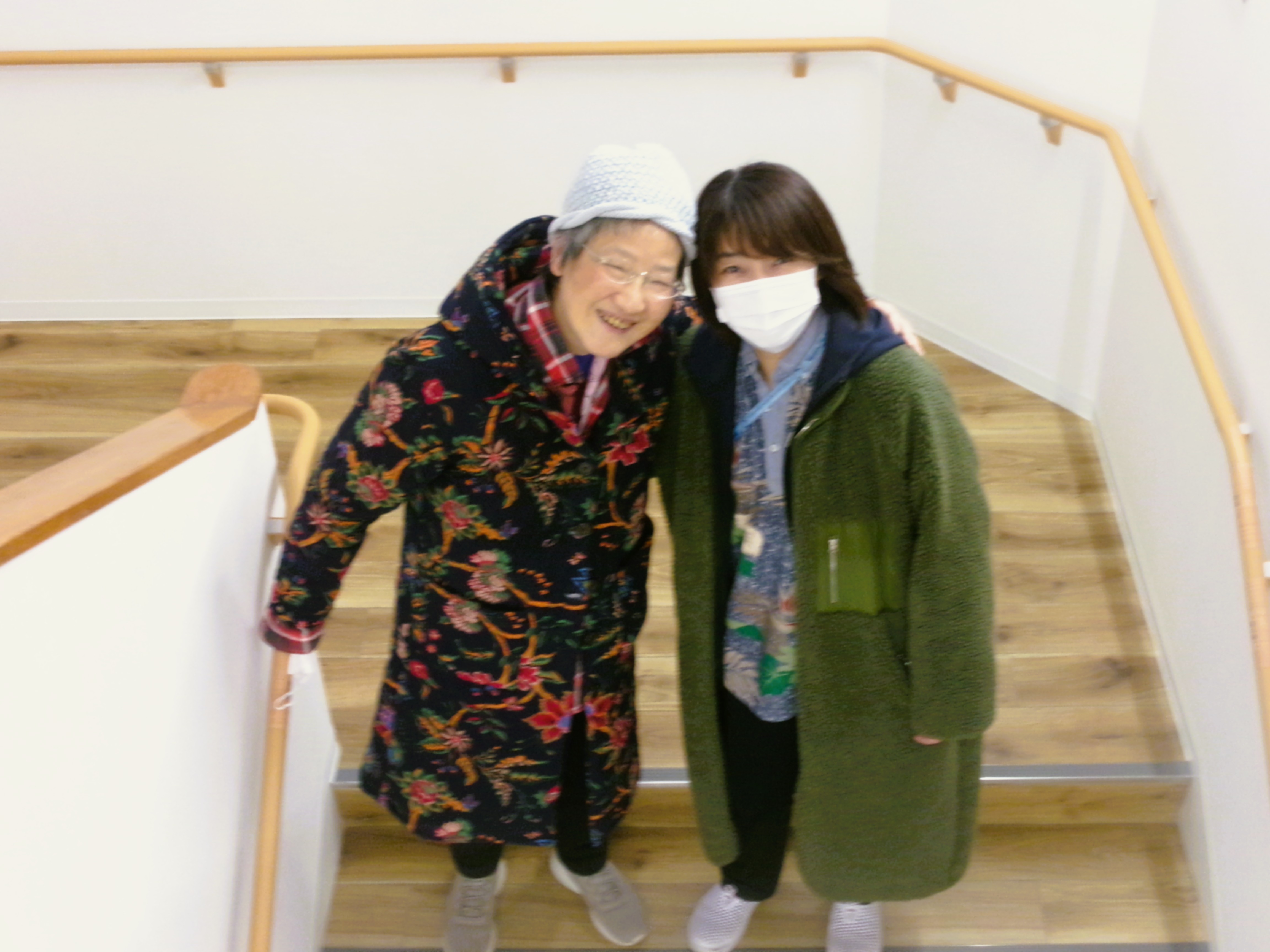 寒い時期ですが、リハビリの為に屋外歩行も行っています!