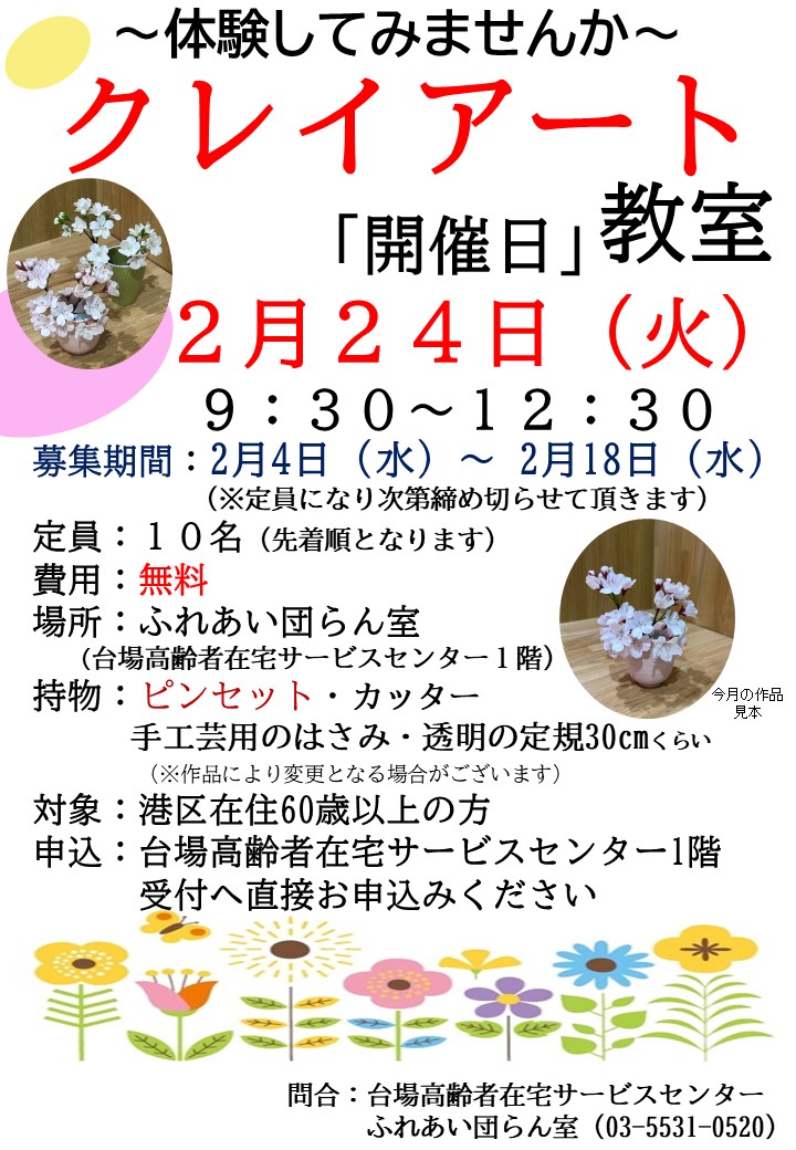 クレイアート教室【台場ふれあい団らん室】【台場高齢者在宅サービスセンター】