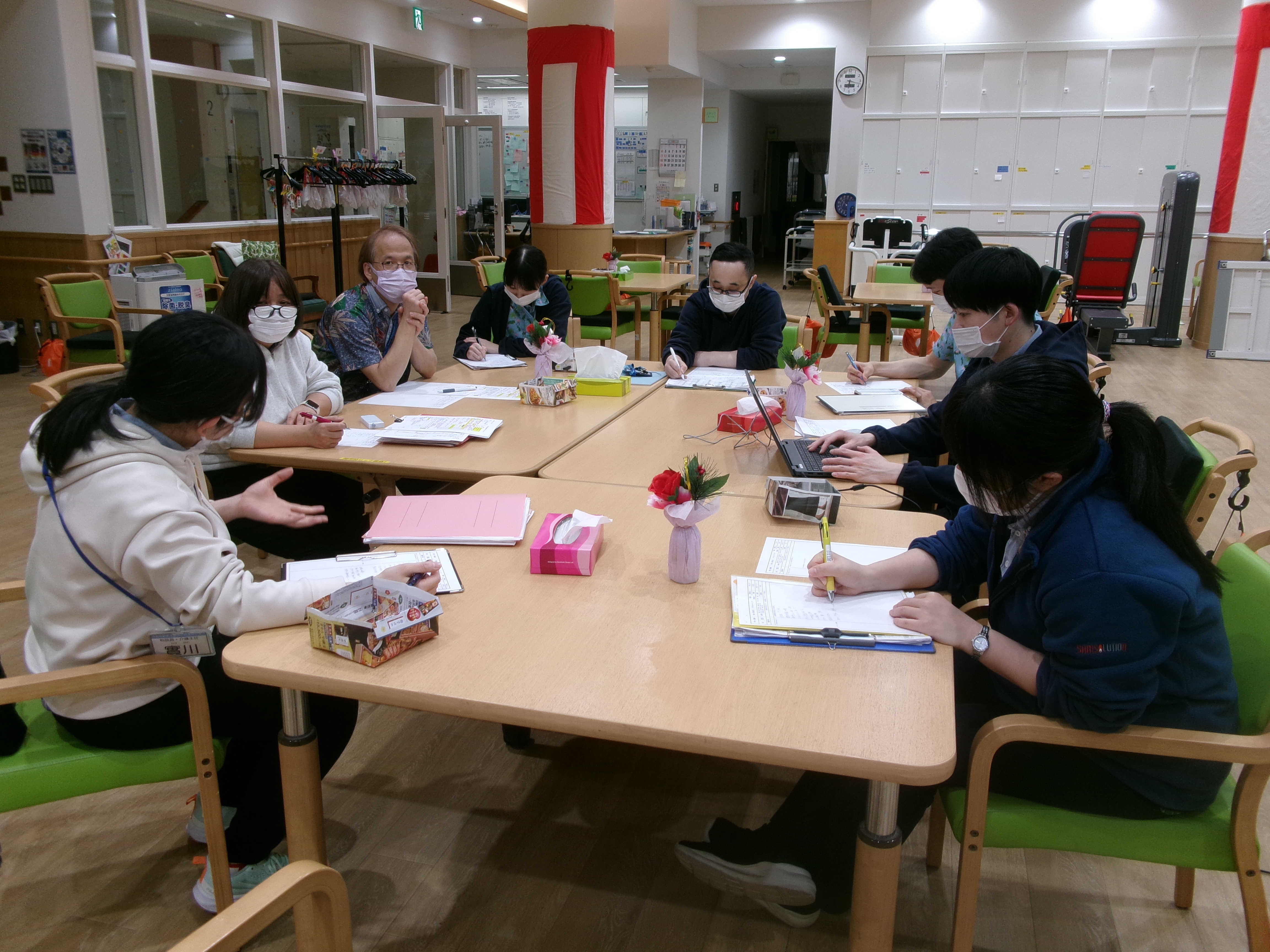 介護職・相談職でケアミーティングを行っております。
