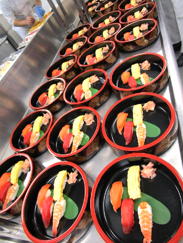 寿司職人さんが作って下さった見本を元に盛り付けていきます。