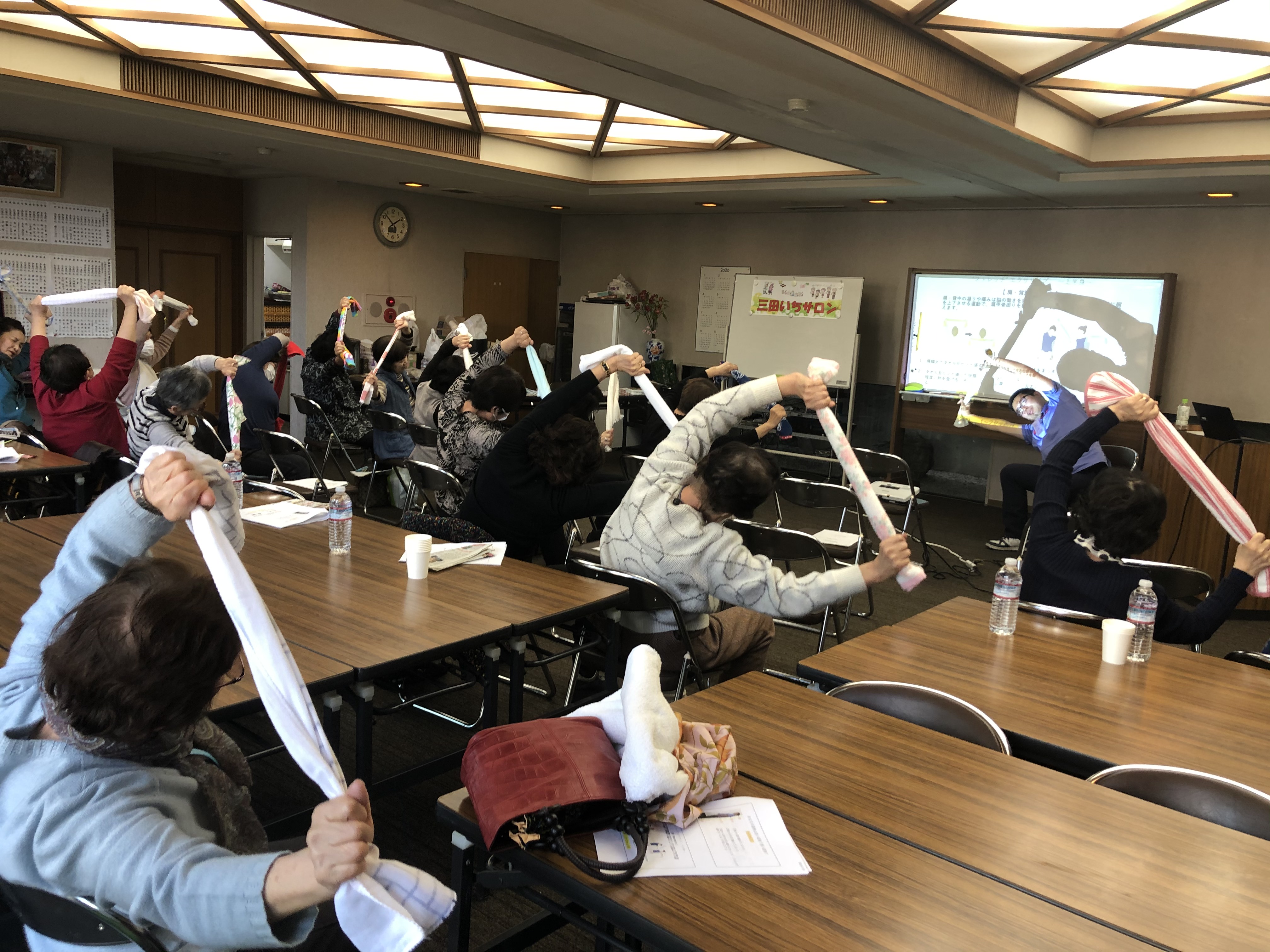 転倒予防や尿漏れに効果がある筋肉の鍛え方などがあり、皆さん興味深く聞かれ、楽しそうに体操をしておられました。