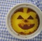 パンプキンプリンには、ハロウィン南瓜の顔にココアでしました。