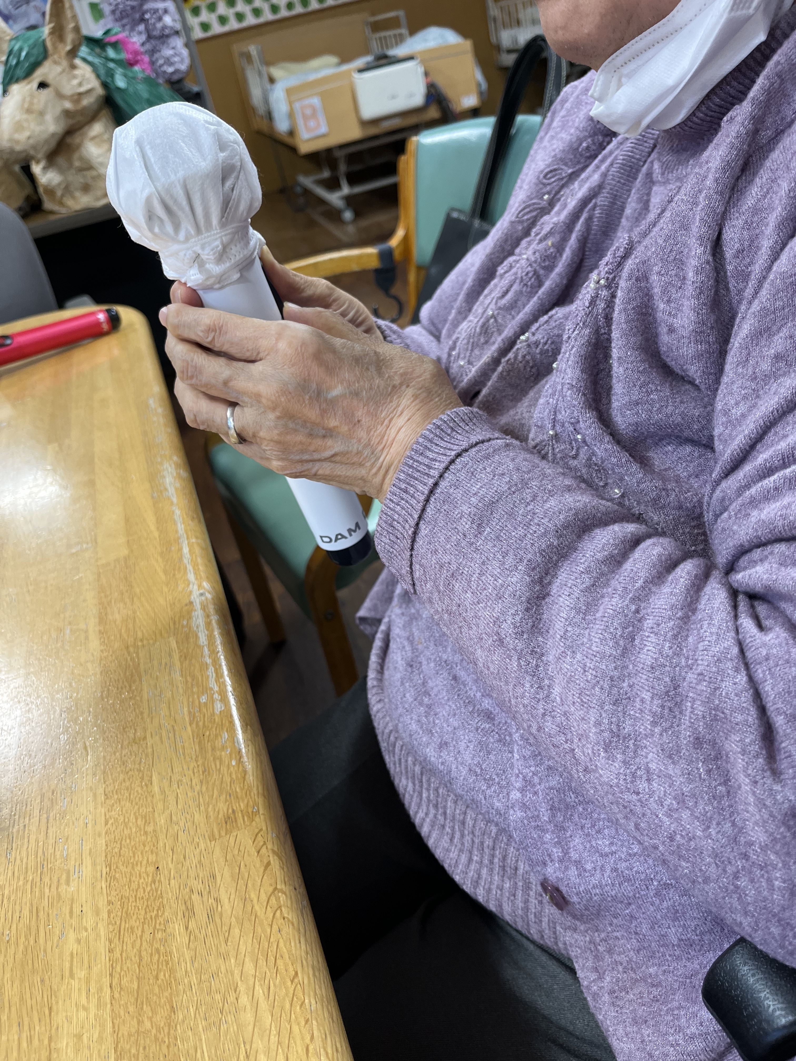 ※マイクにマスクを付けて感染予防に努めています♪