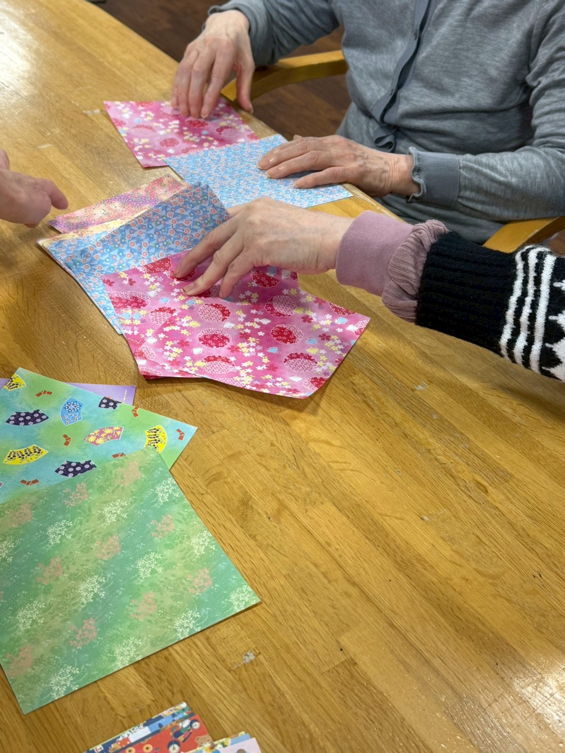 ご自分で好きな色の折り紙を選んで・・・