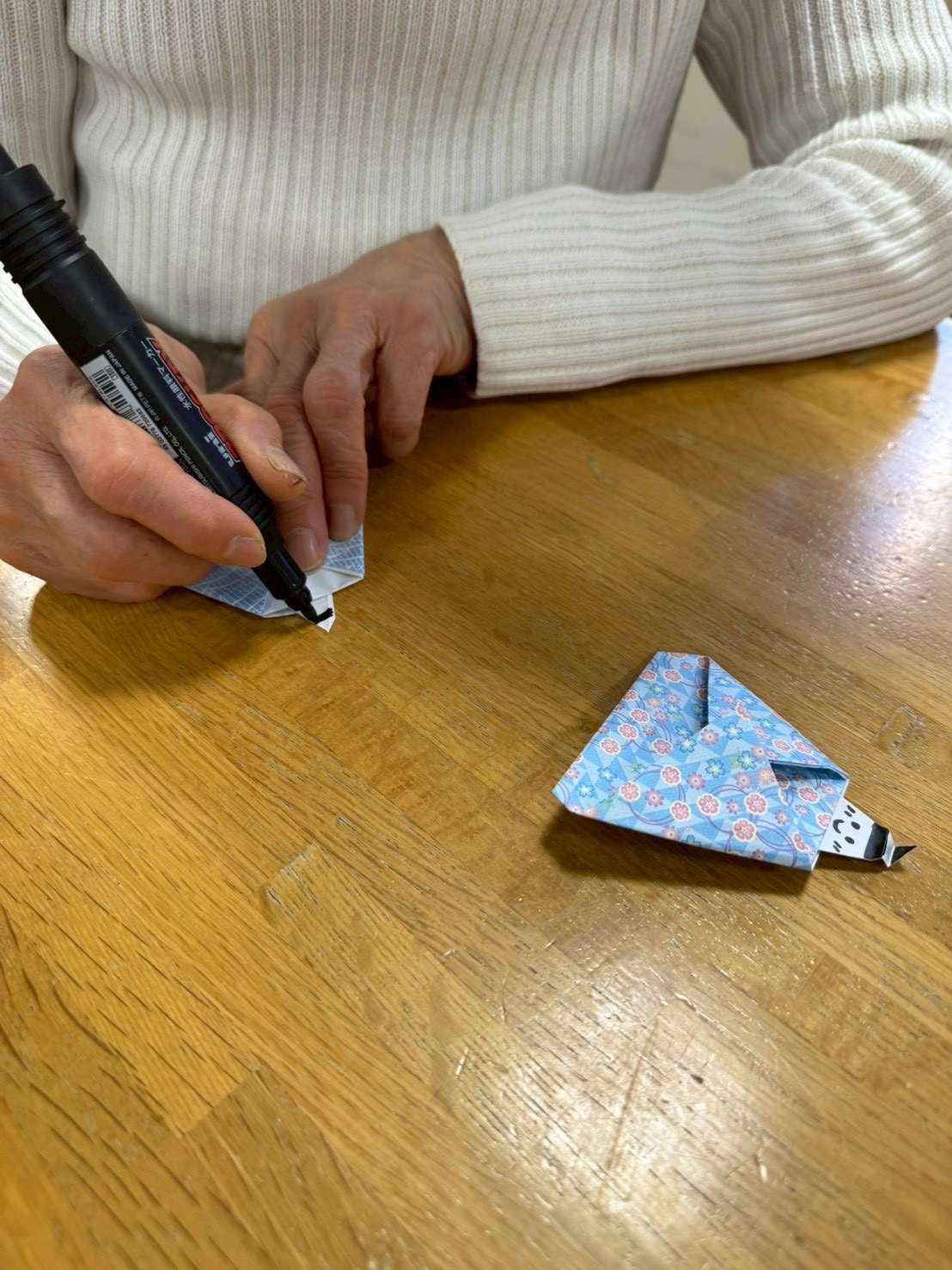 折ったあとに顔を書きました!!