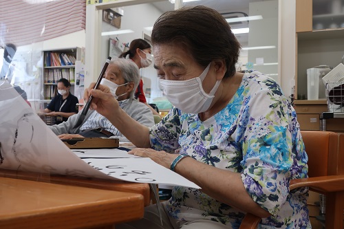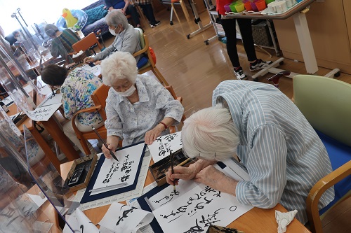 先生が来られなくなって、先生をご存知ないお客様もいます。早く先生が来られるようになって、そのようなお客様に先生の書道を知っていただけたらな、と思います。とても褒め上手で、職員(特に私)までもやりたくなるんですよ!
