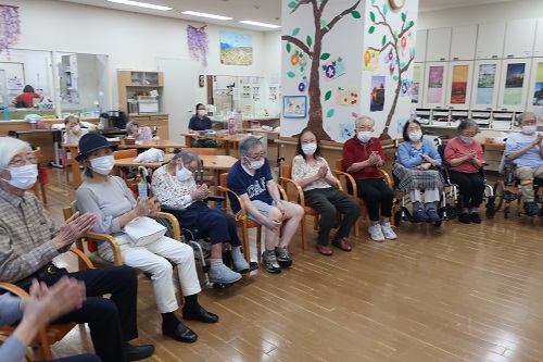 本日の音楽レクでは、職員のピアノ演奏を皆さまに聴いていただきました♪